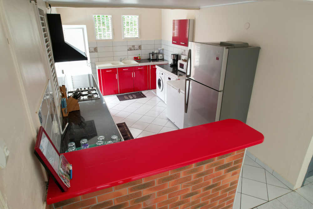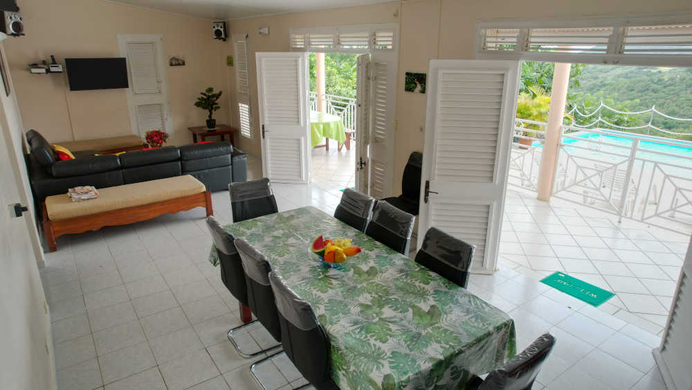 La piscine privative traitée par électrolyse de l'eau (eau salée non agressive pour les peaux sensibles, les yeux et les cheveux) de 11 mètres x 5 mètres est accessible par des barrières homologuées en fer forgé installées depuis la villa (munies de 3 portillons d'accès avec chacun un cadenas-câble à code pour la sécurité des enfants) et la plage de la piscine de 120 m² terminée par un immense kiosque équipé d'un superbe barbecue, d'un bassin (évier) et d'une salle d'eau équipée d'un wc ainsi que d'un lavabo et une douche extérieure. Vous jouissez d'une vue imprenable et magnifique sur la mer et la pointe du Cap Ferret, 2 grandes terrasses bien équipées avec table de ping-pong et baby foot, salons et tables de jardin en bois exotique, de nombreux transats. La villa est située sur un promontoire et jouit en permanence d'une agréable ventilation. La villa est sur un grand terrain clos de 2000m² avec de très nombreux arbres fruitiers (manguiers, arbres à pain, corossoliers, pruniers, goyaviers, cerisiers, cocotiers, etc ) ainsi que différentes espèces de fleurs que vous découvrirez. La villa est située en fin de voie strictement privée, ce qui vous permets de ne jamais être dérangé dans votre tranquillité. La villa dispose d'un accès internet par wi-fi, du canal satellite pour les grands téléviseurs à écran plat (chambre principale et salon), d'une chaine hi fi, et du téléphone ouvert sur les fixes de Métropole, d'un coffre ainsi que des jeux pour les enfants.- Haute saison (15 décembre au 10 mai - 01 juillet au 31 août) hors fêtes de fin d'année : à partir de 1700 €/semaine
